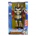 Ce robot en plastique à piles est un jouet idéal pour les enfants dès 3 ans. Ses effets lumineux et sonores captiveront l’enfant et stimuleront son imagination. Le robot sait marcher et ses mouvements interactifs incluent des rotations ainsi que des actions avec l’épée et le bouclier.