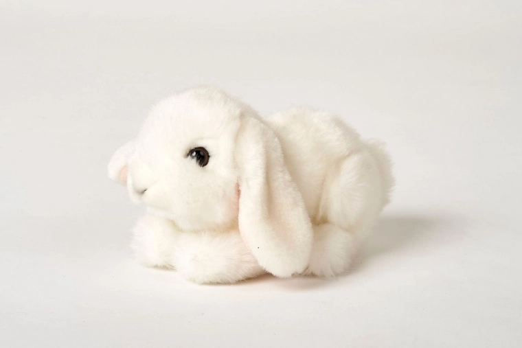 Adorable lapin en peluche de 18 cm, tout doux, léger et idéal comme premier compagnon pour les enfants dès 0+. Un excellent cadeau pour le lit, la poussette et les voyages.