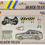 Un set réaliste de police autoroutière au design tchèque de la gamme City Collection ravira tous les petits gardiens de la loi. Il comprend une voiture de police en métal avec un gyrophare lumineux et sonore, une moto en plastique et des panneaux de signalisation. Grâce au mécanisme à rétrofriction, l’action sur la route démarre aussitôt. Idéal pour les enfants dès 3 ans.