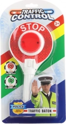 Palette de police avec lumière. Un côté s’allume en rouge et l’autre en vert. Alimentation par 2 piles AA (incluses). Dimensions de la palette : environ 23 cm. Dimensions de l’emballage : environ 30 x 16 x 3 cm. Âge 3+