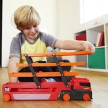 Stockez jusqu'à 50 petites voitures sur six niveaux extensibles du transporteur.
