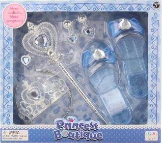 Dans l’emballage, vous trouverez tout ce dont une vraie princesse a besoin : une couronne scintillante, un sceptre assorti, des mules élégantes et un ensemble de bijoux pour parfaire le costume. Parfait pour les anniversaires, les bals masqués et le théâtre à la maison.