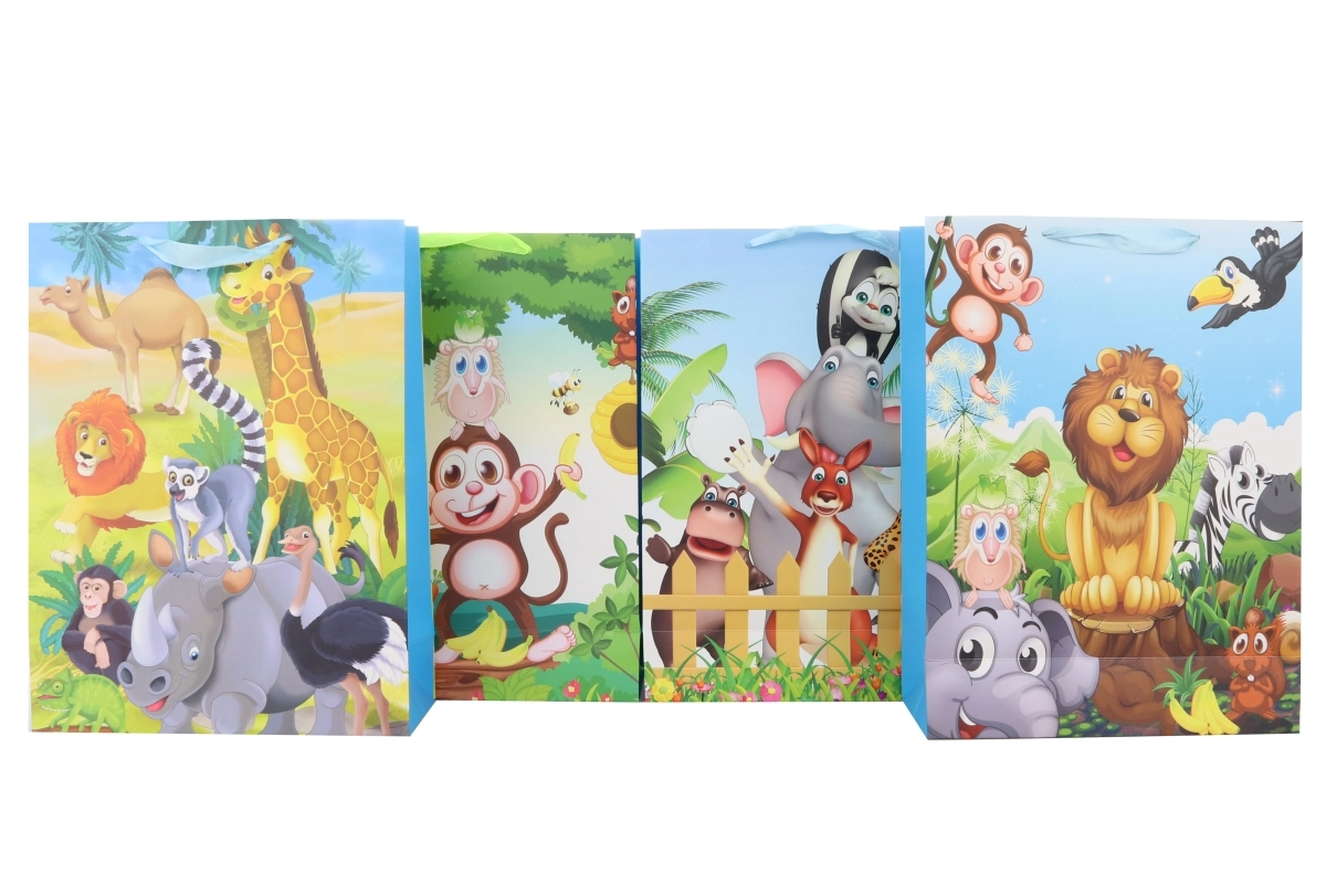 Le grand sac-cadeau avec motifs safari est idéal pour emballer des présents plus volumineux. Des designs attrayants avec des animaux exotiques donnent au cadeau une allure exceptionnelle et font gagner du temps à l’emballage. Le sac convient aux enfants comme aux adultes et s’adapte aux anniversaires, célébrations ou fêtes.