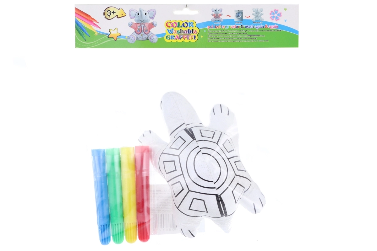 Découvrez un jeu créatif avec cette tortue à colorier que les enfants peuvent colorier, laver et décorer à nouveau selon leur imagination. Le pack comprend 4 feutres colorés, un matériau en polyester sûr et un format idéal pour les petites mains. Un excellent cadeau pour les enfants à partir de 3 ans.