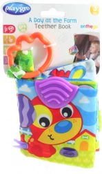Livre textile classique Playgro, qui stimule la vision des enfants grâce à des images et motifs colorés. Les pages bruissantes et les matériaux variés invitent à l'exploration. Contient un anneau de dentition et un clip pour une fixation facile.