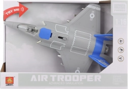 Avion de chasse à piles qui, en appuyant sur les boutons, émet des sons et s’illumine.