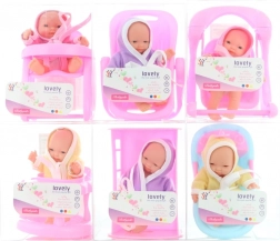 Adorable bébé avec divers accessoires pour un jeu créatif. Chaque bébé est livré avec un accessoire (chaise, baignoire, petit lit, trotteur, etc.) et une tenue, idéal pour les petits soigneurs. Taille compacte d’environ 10 cm, parfaitement adaptée aux mains des enfants. Convient aux enfants à partir de 3 ans.