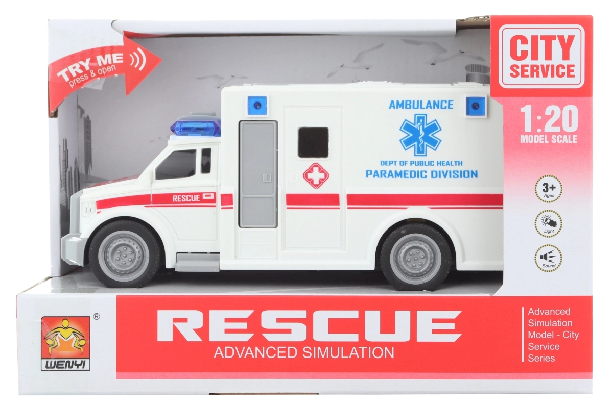 Cette ambulance blanche détaillée à piles offre aux enfants beaucoup de plaisir et stimule leur imagination. Grâce aux effets lumineux et aux sons réalistes de sirène, chaque jeu se transforme en mission de sauvetage.