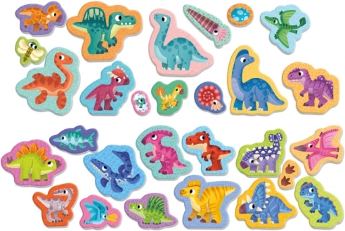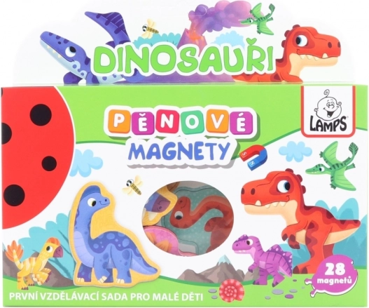Aimants en mousse Dinosaures : 28 pièces, épaisseur 4 mm pour une prise en main facile. Apprentissage et jeu sur réfrigérateur et tableau. Favorisent la motricité et la créativité des enfants.