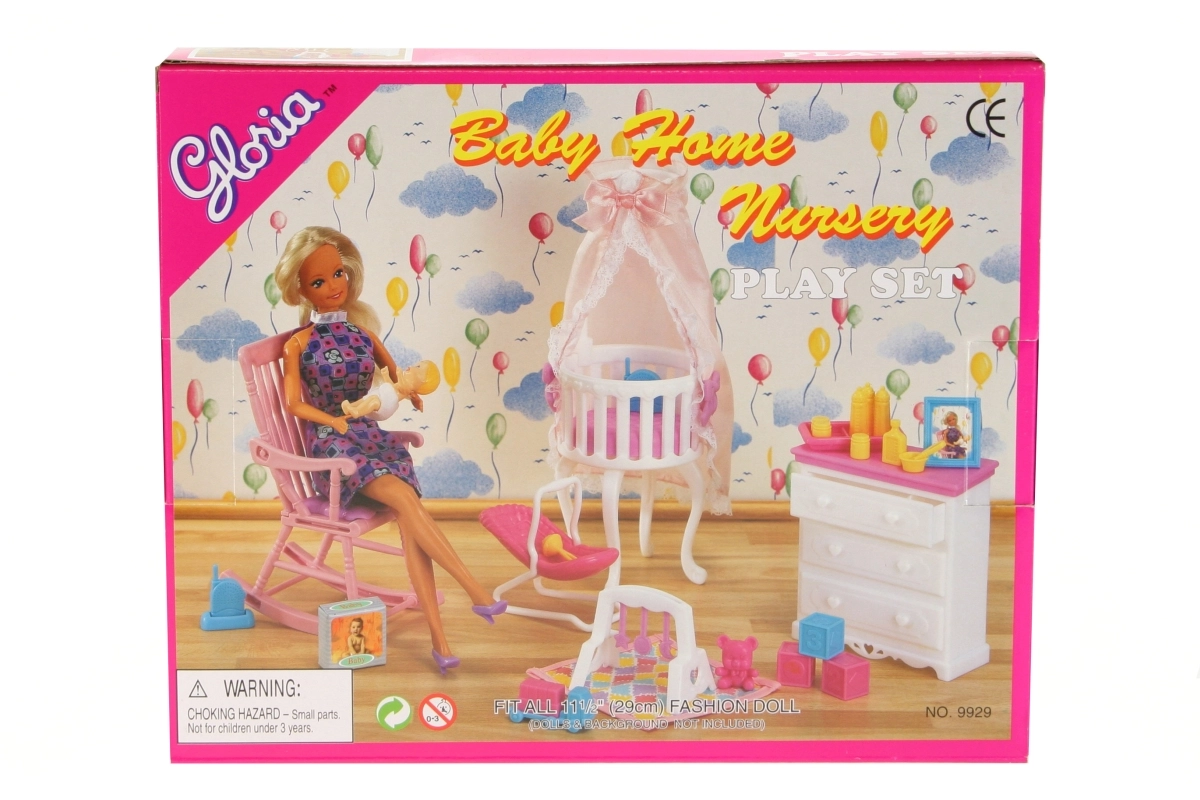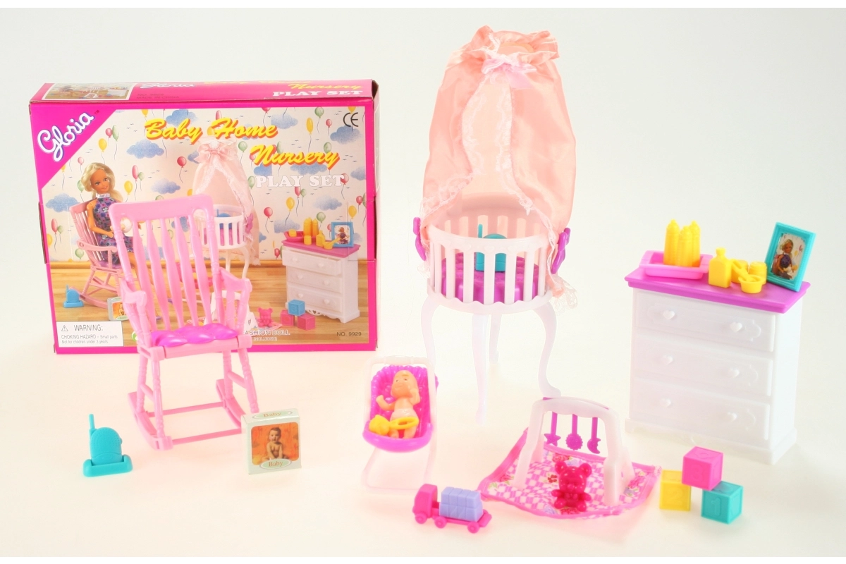 Le coffret complet pour bébé de la marque Glorie apporte tout ce qu’il faut à la chambre d’enfant pour jouer avec des poupées. Il comprend une commode avec tiroir, un berceau à baldaquin, un transat, un fauteuil à bascule, des accessoires de soin pour bébé et le bébé lui‑même. Idéal dès 3 ans pour développer l’imagination et les compétences de soin.