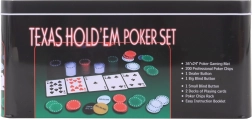 Profitez d'une expérience professionnelle avec un set de poker maison qui comprend 200 jetons et d'autres accessoires nécessaires pour jouer dans une élégante boîte en métal.
