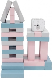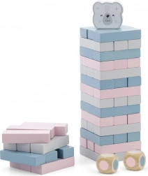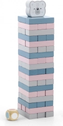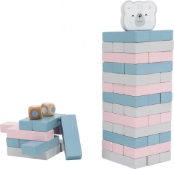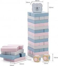 Le set contient 56 blocs en bois et 2 dés pour de nombreuses variantes de jeu.