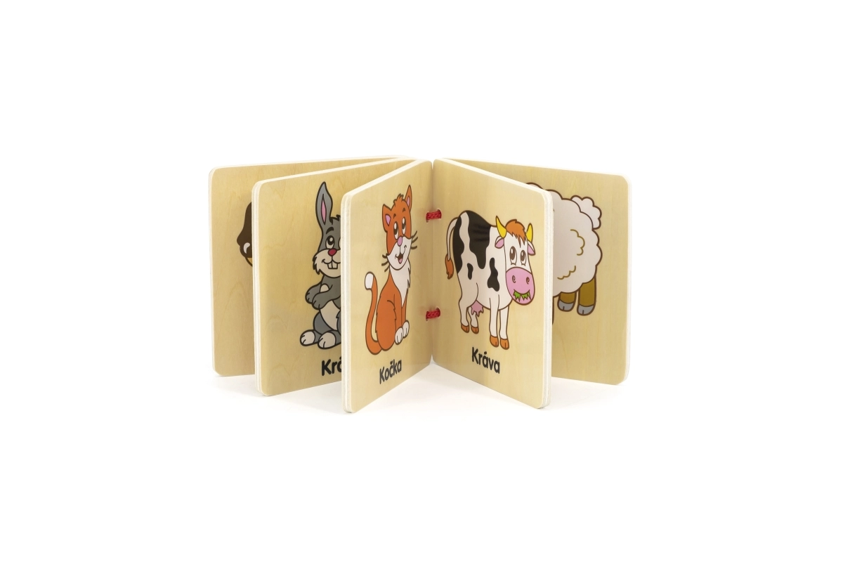 Découvrez le monde de la ferme avec ce joli petit livre en bois pour les tout-petits. Il offre des pages solides en bois, de simples images d’animaux et du texte en tchèque, qui soutiennent le développement précoce du langage, de la motricité et de la reconnaissance. Idéal dès 12 mois pour un apprentissage sûr et amusant.