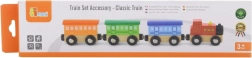 L'ensemble en bois Train classique comprend 4 pièces reliées par des aimants. Ce jouet a été conçu par le fabricant renommé de jouets en bois, Viga Toys. L'ensemble peut être utilisé comme jouet autonome ou comme complément à d'autres circuits de train, constructions et ensembles.
