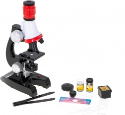 Comprend divers accessoires tels que des pinces, une préparation prête sur lame, quatre lames pour préparer vos propres échantillons, deux tubes à essai, et des autocollants. Tout cela permet d'explorer sans difficulté le micro monde et encourage la curiosité et les capacités cognitives des enfants.