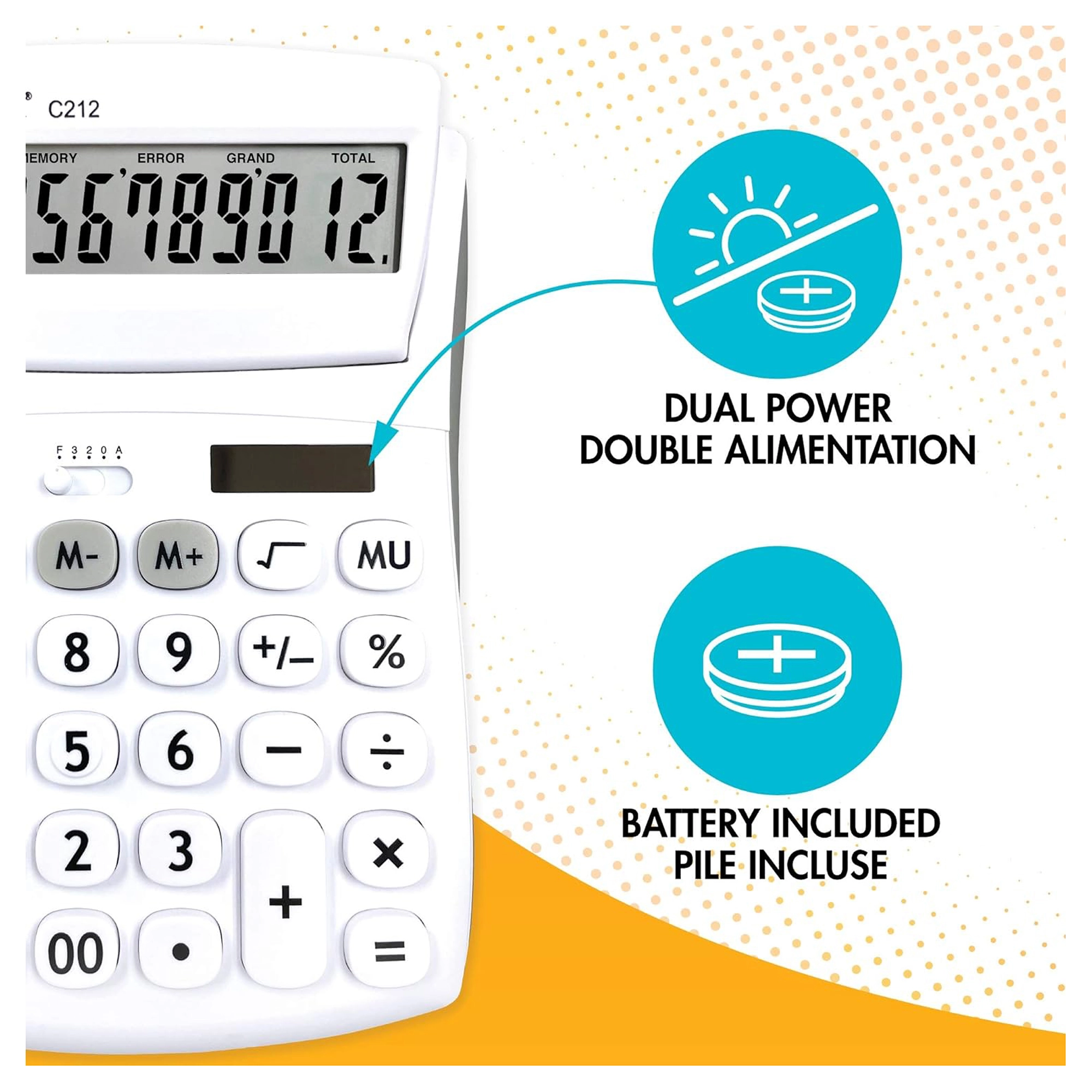 Calculatrice de poche 12 chiffres avec angle d’écran réglable