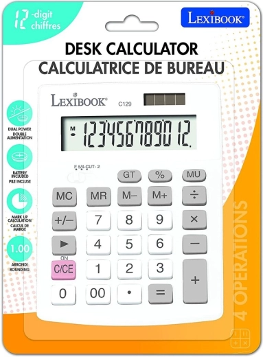 4 opérations + fonctions avancées (mémoire sur 4 touches, total général, pourcentages) + calcul des majorations.