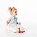Grâce à sa mobilité et à la possibilité de le tirer, le jouet favorise le développement de la motricité fine.