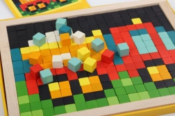 CUBIKA est une nouvelle marque de jouets en bois fabriqués uniquement à partir de bois issu de forêts gérées durablement, avec une finition très précise et un design attrayant. Pixel IV voitures est une mosaïque en bois composée de 400 petites pièces de 1 x 1 cm, de 7 modèles thématiques et d’un cadre en bois. La connaissance des couleurs et une pincée de patience suffisent pour assembler de belles images à partir des petites pièces colorées. La gamme de jouets CUBIKA aide les enfants à développer principalement leurs capacités et compétences sensori-motrices, la pensée logique, la créativité, l’imagination et diverses connaissances cognitives. Les jouets sont fabriqués en érable et en hêtre de la plus haute qualité et, pour la coloration, des peintures à base d’eau de très haute qualité sont utilisées, totalement sûres pour les enfants et sans odeur. Tous les produits de cette marque disposent de la certification allemande TÜV et sont fabriqués conformément à la norme européenne de sécurité des jouets EN 71. Ne convient pas aux enfants de moins de 5 ans. Fabriqué en Europe.