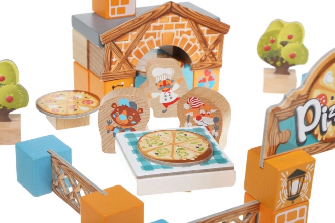 Le kit de construction en bois Pizzeria de la marque Cubika offre aux enfants la possibilité de plonger dans un monde de fantaisie et une atmosphère culinaire magique de pizzeria. L'ensemble contient 30 pièces en bois et 12 accessoires thématiques en carton. Tout est fabriqué à partir de matériaux de qualité et sûrs qui respectent les normes européennes strictes.