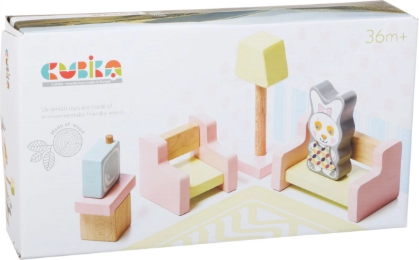Découvrez la magie des jouets Cubika avec ce salon pour poupées, fabriqué en bois issu de sources durables, avec un usinage précis et un design moderne. Cet ensemble comprend 9 pièces, dont un canapé en bois, un fauteuil et des accessoires magnétiques.