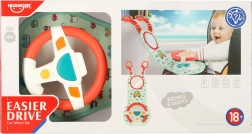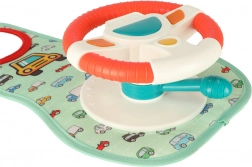 Ce volant interactif pour voiture, conçu pour divertir votre enfant pendant les voyages, comprend un panneau coloré avec volant et un rétroviseur sécurisé. Il comporte quatre boutons et un levier sensoriel offrant des sons et des lumières colorées, stimulant l'imagination et les perceptions sensorielles des enfants.