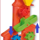 Observez les roues colorées se mettre à tourner et la rigole diviser le flux. Le jeu stimule la perception sensorielle et la pensée logique.