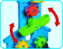 La glissière mobile intuitive sous la trémie permet aux enfants de régler la taille de l’ouverture et donc l’intensité du flux. Le jouet est fabriqué en Italie en plastique de qualité avec un accent particulier sur la sécurité des plus petits.