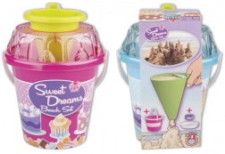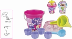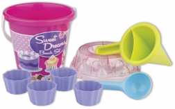 Ensemble de sable en 8 pièces, fabriqué en plastique de haute qualité en Italie. Contient: Seau, tamis transparent en forme de gâteau, pelle, 4 moules en forme de babka et un entonnoir de décoration pour mélanger le sable et l'eau et créer des muffins créatifs et d'autres créations. Seau: diamètre 17 cm, hauteur 16 cm. Ensemble: hauteur 22,5 cm, poids 0,43 kg. Âge recommandé à partir de 12 mois.