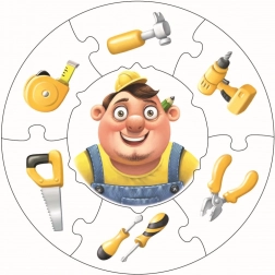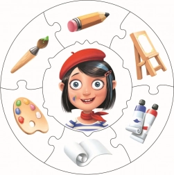 Découvrez l'apprentissage ludique avec les puzzles Puzzlika Professions 1. Le set comprend 21 pièces solides permettant de composer 3 grandes images rondes de métiers – médecin, artisan et peintre. Les puzzles en carton multicouche résistant développent la logique, la motricité fine, la créativité et les capacités cognitives. Convient dès 3 ans, fabriqué en Europe.
