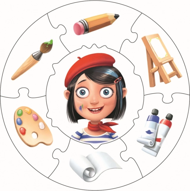 Les puzzles éducatifs Puzzlika Professions 1 offrent aux enfants un divertissement intelligent qui soutient le développement de compétences essentielles. À partir de 21 pièces solides, vous composerez trois scènes rondes indépendantes représentant des métiers – médecin, artisan et peintre. Grâce au carton multicouche de qualité à surface brillante, les pièces sont agréables au toucher, faciles à entretenir et durables.
