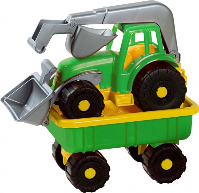 Ce grand tracteur de chantier est un excellent compagnon pour les constructions dans le bac à sable, le transport de matériaux et le jeu créatif en intérieur.