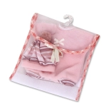 Le set est fabriqué à la main en Espagne avec un souci de qualité et de détail. Il comprend un sac de transport à velcro pratique pour ranger les vêtements ou les emporter en voyage ; l’emballage est complété par un cintre en plastique pour un rangement ordonné.
