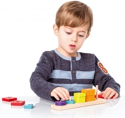 Enfiler les formes sur les chevilles favorise la coordination œil-main, la patience et la concentration, une activité idéale dès 18 mois.