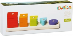 Le puzzle en bois CUBIKA offre une manière ludique de faire découvrir à l’enfant les formes et les couleurs. Sur une base carrée solide munie de chevilles, les enfants enfilent 15 pièces perforées colorées – cercles, triangles, carrés et autres formes géométriques simples – et exercent ainsi naturellement la coordination œil–main et la concentration.