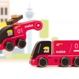 CUBIKA pompiers – petite voiture en bois avec hélicoptère