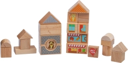 Différentes formes et motifs (fenêtres, toits, vitrines) permettent aux enfants de construire des maisons, des petites tours et des rues entières selon leur imagination.