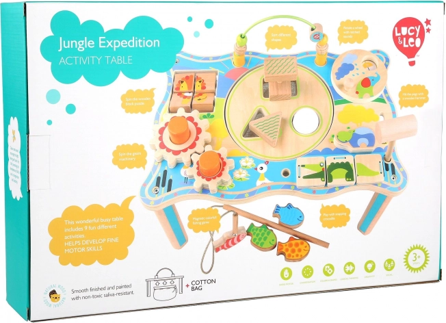 Découvrez le jeu et l’apprentissage réunis avec la table d’activité pour enfants LUCY & LEO – Expédition dans la jungle. Cette table multifonction en bois de qualité propose une grande variété d’activités pour développer les compétences des enfants : pêche magnétique, engrenages, labyrinthe à billes, banc à marteler et boîte de formes. Sa conception robuste, son design ludique et le sac en lin pratique pour collecter les pièces garantissent de longues heures de jeu enrichissant.