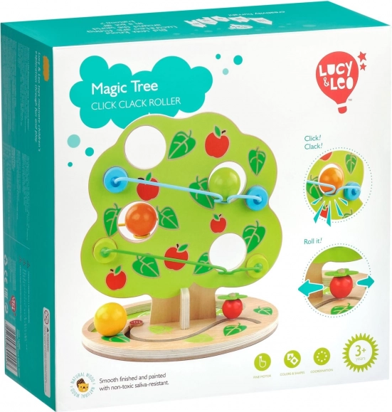 Ce toboggan à billes au design attrayant en forme d’arbre propose plusieurs rails en cascade sur les côtés. Il suffit de poser l’une des grandes boules en bois lisses au sommet et de regarder la descente, rythmée par des « clics », jusqu’à l’arrêt au pied de l’arbre. Un jouet idéal pour les enfants actifs qui aiment le mouvement, les sons et l’exploration des causes et des effets.