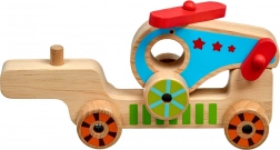 Le camion, la petite voiture et l’hélicoptère peuvent être utilisés séparément ou assemblés en un seul convoi. Les enfants exercent leur imagination et leur logique en chargeant et en transportant.