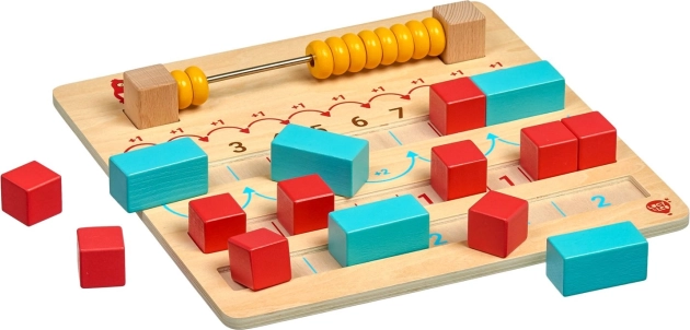 Découvrez un outil intelligemment conçu qui aide les enfants à comprendre les nombres et les opérations simples. La planche en bois avec boulier intégré et rainures guides accompagne l’enfant pas à pas – il suffit de suivre les pictogrammes sur la planche et d’insérer les pièces colorées aux bons endroits. Une approche ludique qui favorise la concentration et le plaisir de découvrir.