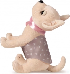 Le chien porte un vêtement à fermeture velcro et un ruban décoratif sous le cou, ce qui ajoute à son attractivité. Il convient aux enfants à partir de 3 ans. Les matériaux utilisés comprennent la peluche, le textile et le plastique, rendant le jouet non seulement agréable au toucher, mais aussi facilement lavable à 30°C.