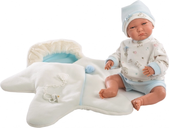 Offrez à votre poupée une tenue douillette au design adorable. Cet ensemble de 3 pièces comprend une combinaison en polaire réversible en forme d’étoile et des accessoires assortis, créant ensemble une tenue chaude et confortable pour jouer à imiter les parents. La coupe universelle convient aux poupées NEW BORN de 40–42 cm.