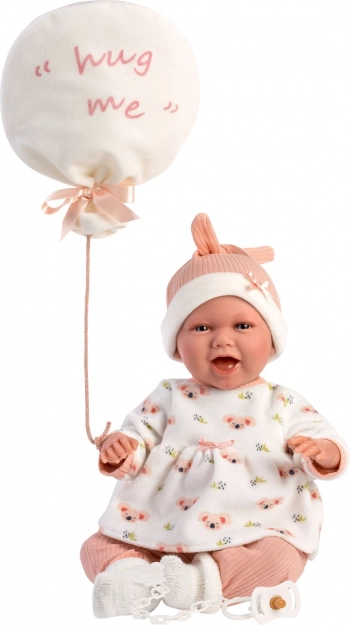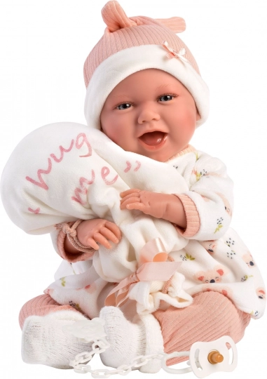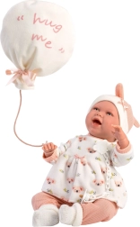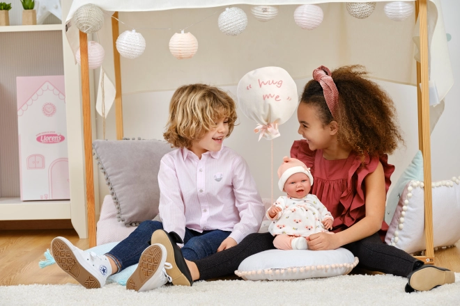 Élégant ensemble de vêtements 4 pièces pour poupées NEW BORN de 40–42 cm, dans de douces couleurs pastel, avec des matières chaudes et un adorable doudou en forme de ballon portant l’inscription « hug me ». Parfait pour un habillage confortable, le jeu d’imitation réaliste et comme cadeau pour les petits amoureux des poupées. Fabriqué en Espagne, recommandé à partir de 3 ans.