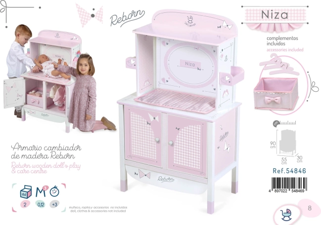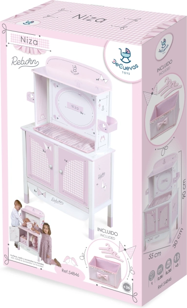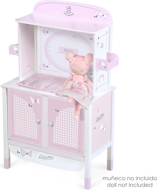 Grâce à son design espagnol précis et à des matériaux soigneusement sélectionnés, l’armoire paraît légère et épurée. Ses dimensions pratiques assurent stabilité et espace suffisant pour tous les indispensables de soin d’une poupée jusqu’à 45 cm.