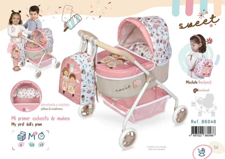 La poussette pour poupées Mi Primer Carro Sweet de l'entreprise DeCuevas est un choix idéal pour les enfants qui aiment jouer avec des poupées. Cette poussette allie fonctionnalité et design attrayant, ce qui en fait un accessoire apprécié des jeux d'enfants. Sa structure pliable permet un rangement et un transport faciles.