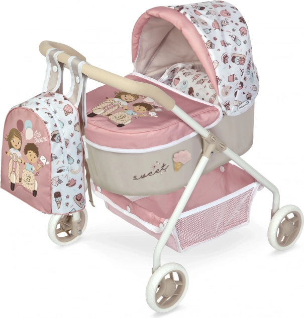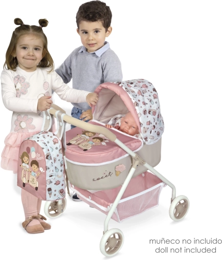 La poussette est équipée d'un matelas moelleux et d'un oreiller qui assurent le confort des poupées pendant les promenades. Elle est également accompagnée d'un sac à dos pratique où les enfants peuvent ranger de petits accessoires pour leurs poupées. Grâce à des roues robustes et à une structure stable, la poussette est sûre et facile à manœuvrer.