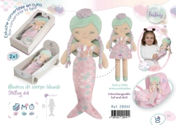 La poupée en peluche Ocean Fantasy de la collection 2021 éblouira chaque fillette par son magnifique design espagnol. Elle est livrée avec une housse en tissu représentant une queue de sirène, permettant la transformation en fillette. Cet ensemble multifonctionnel comprend également une boîte cadeau décorative qui peut être transformée en berceau.