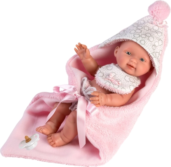 Cette tenue en deux pièces est spécialement conçue pour la poupée bébé New Born de 26 cm. Elle comprend une couverture réversible avec capuche qui protège la poupée et lui donne l’apparence d’un vrai bébé.