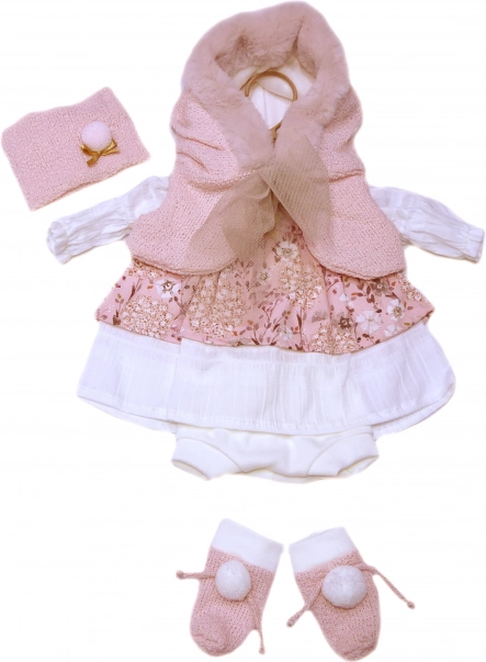 Comprend une robe, un bonnet, un bandeau, des chaussettes et une écharpe, qui peuvent être combinés à volonté.